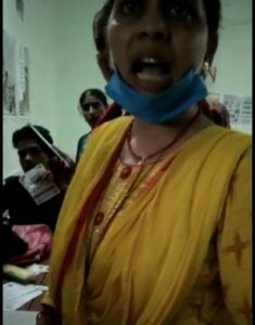 कोरोना गाईड लाइन का पालन न करने के हवाला देते हुए महिलाओं से ख़ुशब्दो का प्रयोग कर भागने की कोशिश करती हुई नजऱ आ रही थी स्वास्थ्य कर्मचारी-
