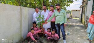प्राथमिक विद्यालयों पर जन विकास मंच एनजीओ के कार्यकर्ताओं ने किया वृक्षारोपण और बच्चों में नोटबुक वितरण