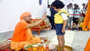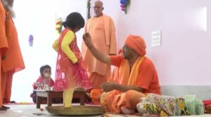 मुख्यमंत्री योगी ने धोए शक्ति स्वरूपा कन्याओं के पांव, हाथों से कराया भोजन