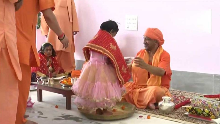 मुख्यमंत्री योगी आदित्यनाथ ने शारदीय नवरात्र की नवमी तिथि गुरुवार को गोरखनाथ मंदिर स्थित भवन में विधि-विधान के साथ परंपरागत कन्या पूजन किया