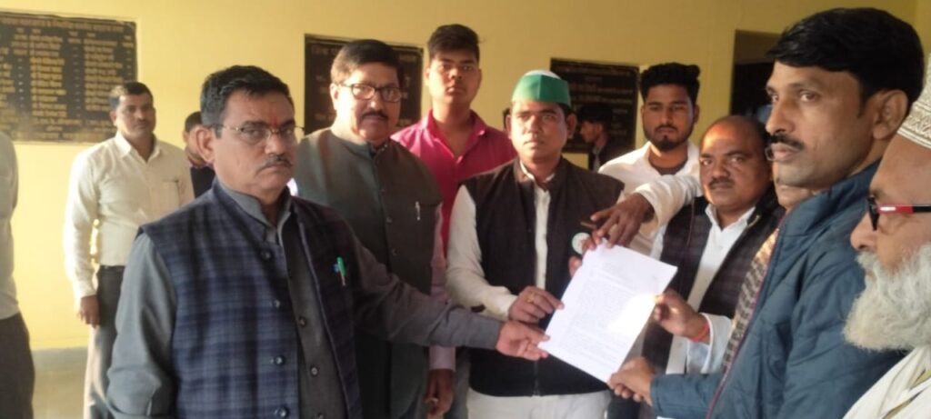 जिला पंचायत महराजगंज परिसर में भारतीय किसान यूनियन के जिला अध्यक्ष सुरेंद्र साहनी(जिला पंचायत सदस्य महराजगंज) एवं जिला महासचिव रामअशीष पासवान(भाकियू) तथा निर्वाचित जिला पंचायत सदस्य प्रेम शंकर पांडे,राबिया,अनवर अली,राजेश निषाद,दुर्गा यादव,राजेश निषाद, कपिलदेव, रविन्द्र जैन, रामबेलश ओमप्रकाश, इमरान खान, सुधांशु चंद सहानी आदि तमाम भारतीय किसान यूनियन के लोगों द्वारा एक दिवसीय धरना प्रदर्शन कर जिला पंचायत सभागार महराजगंज में अपनी 7(सात) सूत्री मांग पत्र में लिखा गया कि माननीय मुख्यमंत्री उत्तर प्रदेश शासन को संबोधित करते हुए जिला अधिकारी महराजगंज के माध्यम से ज्ञापन भेजा गया –
