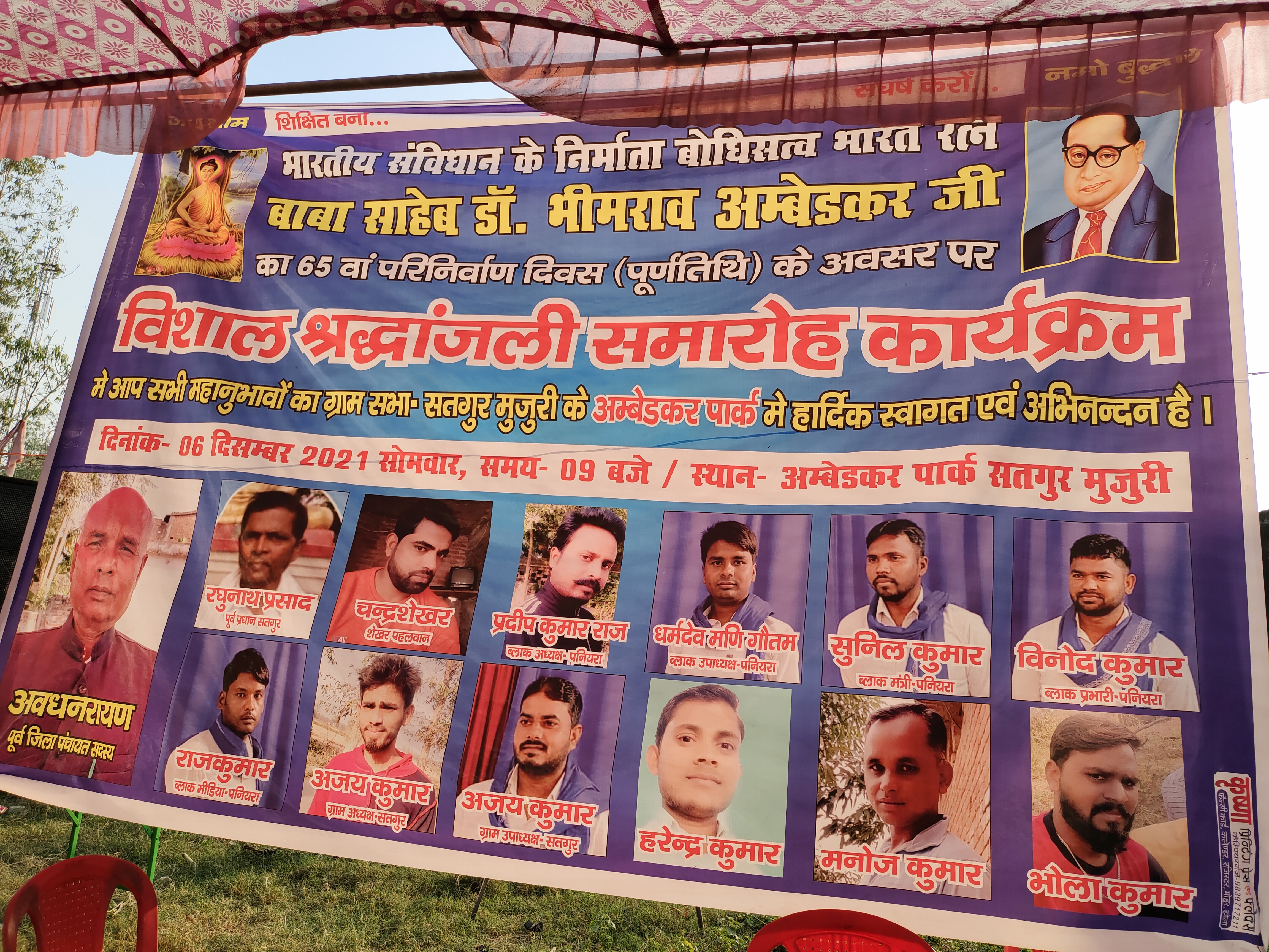 कार्यक्रम के मुख्य भूमिका निभाते हुए अवधनारायण,रघुनाथ,शिवशंकर,रूदल एवं भीम आर्मी के ब्लॉक अध्यक्ष प्रदीप राज,धर्मदेव,सुनील,राजकुमार,चन्द्रशेखर पहलवान,महेंद्र,ग्राम प्रधान मनोज आदि कार्यकता मौजूद रहें-