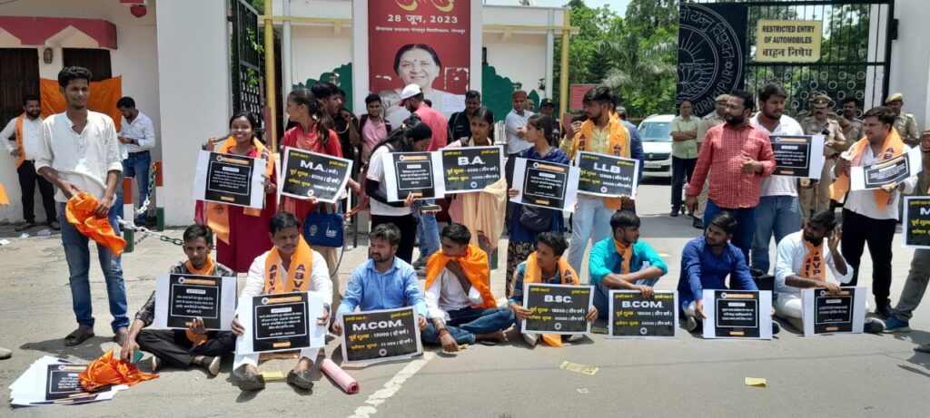 अभाविप ने विश्वविद्यालय में व्याप्त अनियमितता,शुल्क वृद्धि तथा कार्यकर्ताओं पर लगे गंभीर धाराओं में फर्जी मुकदमों के खिलाफ किया प्रदर्शन-