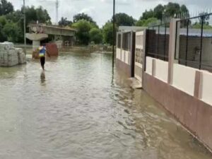 UP में नदियों का जलस्तर बड़ा, मिर्जापुर में बाढ़ के पानी में तैरता दिखा कंक्रीट का मकान