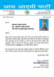 रफ़्तार इंडिया न्यूज़-गोरखपुर- रफ़्तार इंडिया न्यूज़-ब्यूरों गोरखपुर- 21/07/2022 मोहम्मद आकिब अंसारी को आम आदमी पार्टी से गोरखपुर शहर का महानगर...